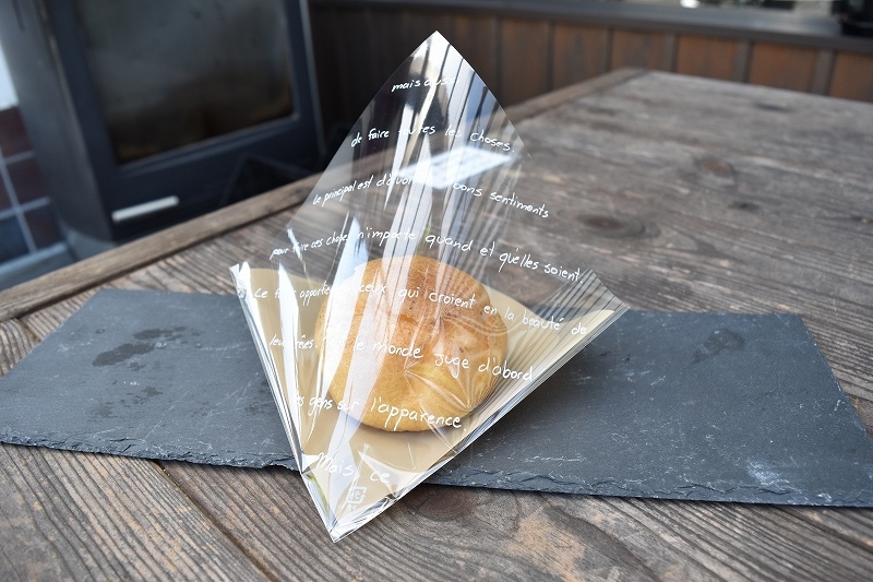 前面に文字柄が印刷されているので、中身を見せつつ
