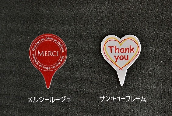 | サイズ | メルシールージュ…横20×縦28mm(差し込み部含む) サンキューフレーム…横21×縦26mm(差し込み部含む) |