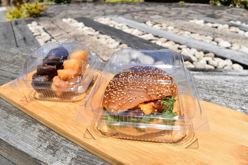 具の大きなハンバーガーも綺麗に収めることができ、高くデコレーションされたパンやお菓子なども
