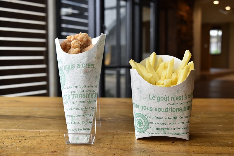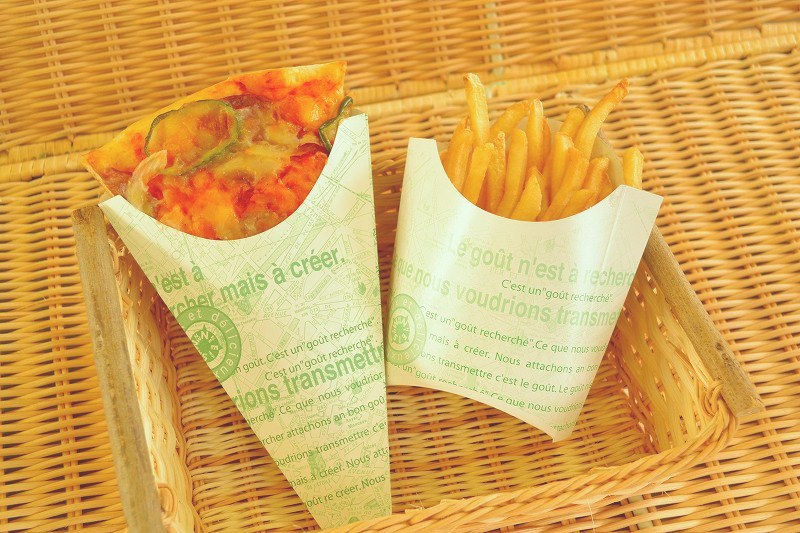 三角袋はポテトやピザ・クレープなど、油ものを入れるのに最適です。