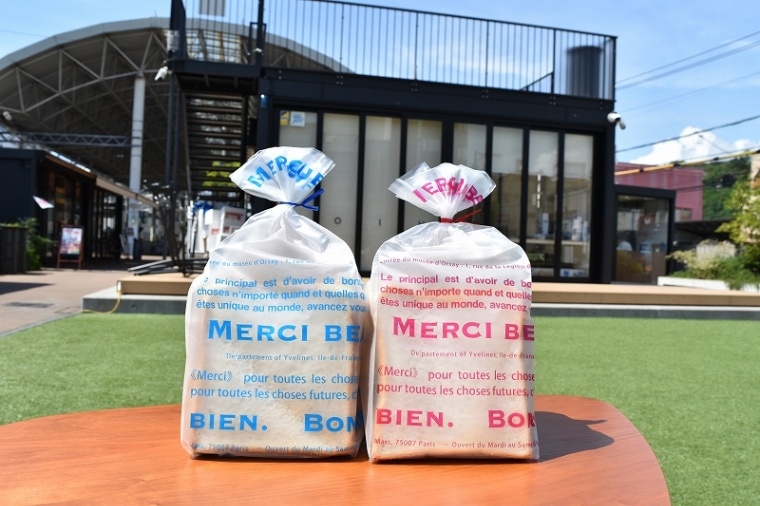 定番のメルシー柄のかっこいい黒文字の食パン袋です。