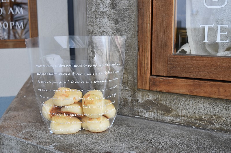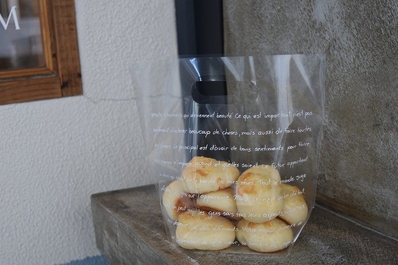 持ち手用の手穴つきなので、パンの詰め合わせだけでなく焼き菓子の詰め合わせなど、ギフトラッピングにもお使いいただけます。
