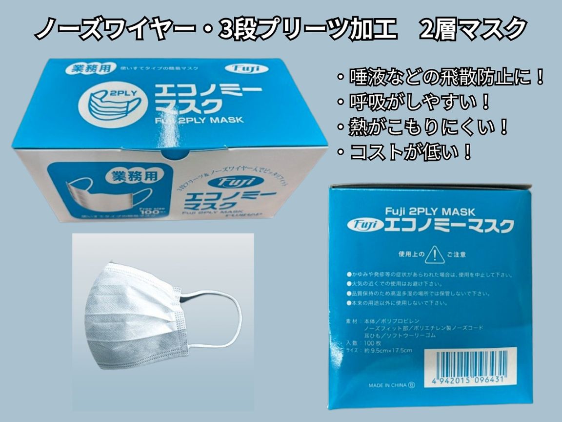 ノーズワイヤーあり、3段プリーツ加工の2層マスクです。