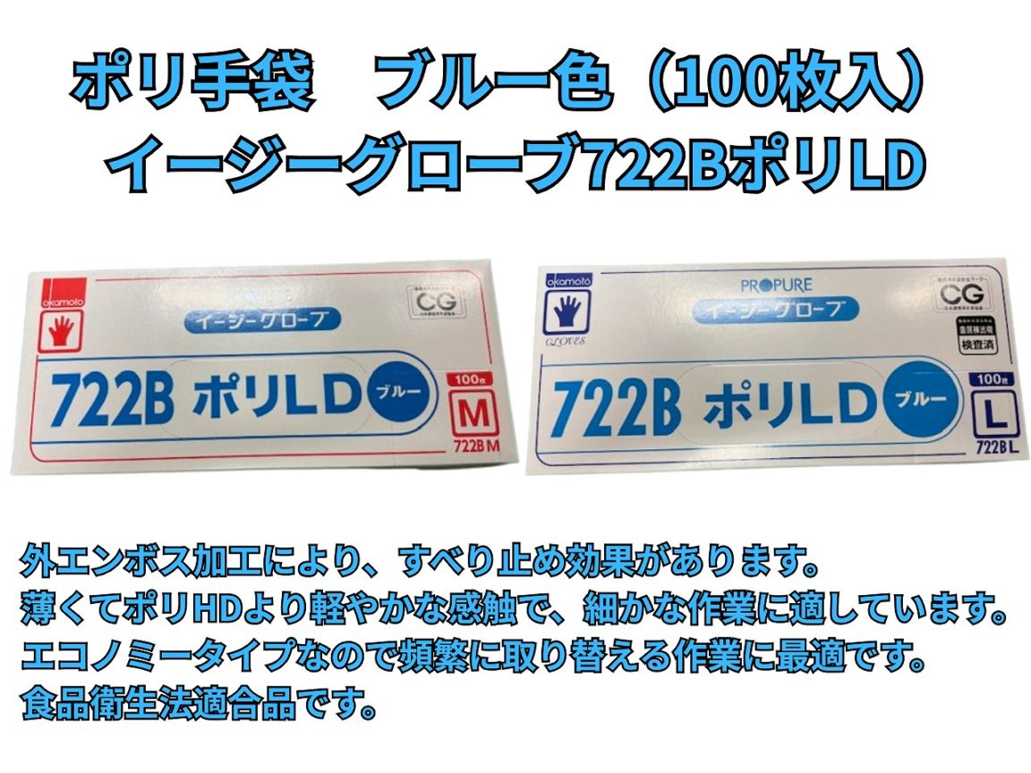 【在庫限り 特別価格】 ポリ手袋 イージーグローブ 722ブルー ポリLD(1箱100枚入)